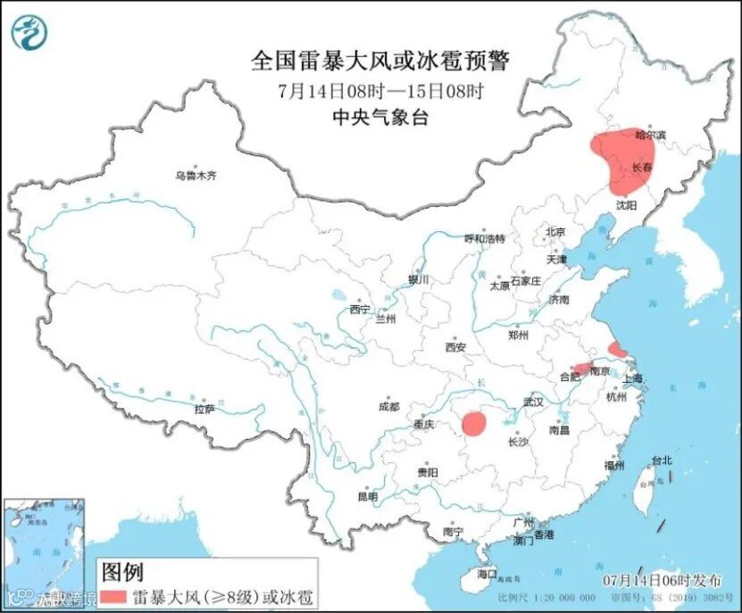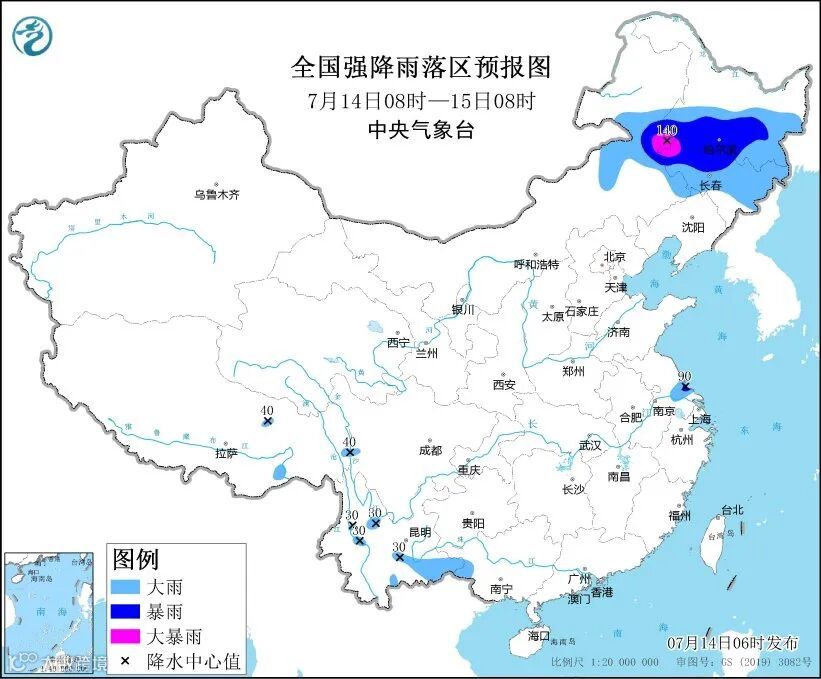 14-15日,内蒙古东部、黑龙江大部、吉林大部等地有中到大雨,部分地区暴雨,局地大暴雨。14-16日,江苏中南部、安徽中部等地有中到大雨,局地有暴雨或大暴雨。