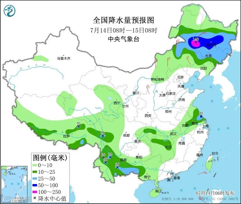 图1 全国强降雨落区预报图(7月14日08时-15日08时)