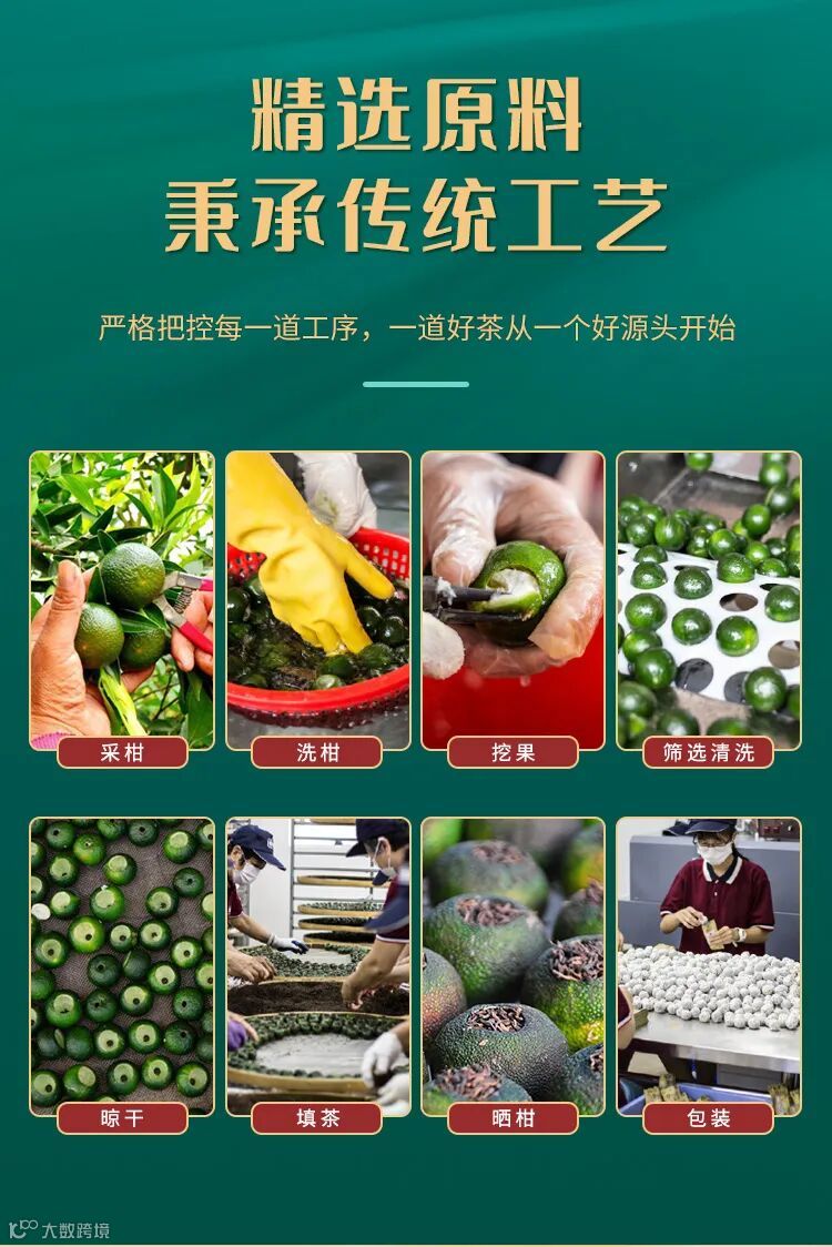 高温烘焙:温度在80~110℃左右,18小时左右小青柑就能被烘干,后期存放变化很小,价格较低。