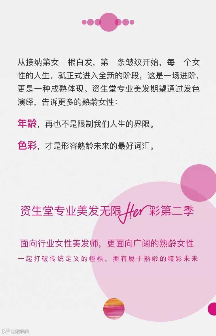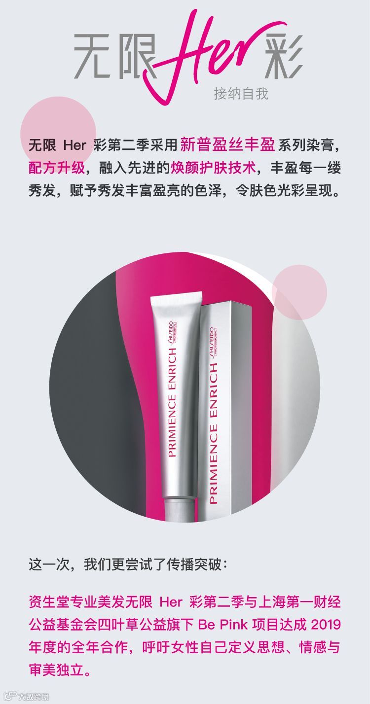 在这个压力重重的时代,让女性“接纳自我”,释放“无限Her彩”,正是资生堂专业美发的目标之一,我们将携手各大沙龙一起,为女性的力量与美丽Her彩!