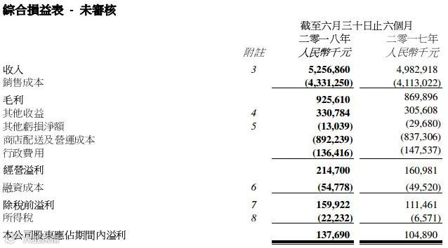 5、高鑫零售公布半年业绩:毛利同比增加2.7%,B2B营业额25亿元