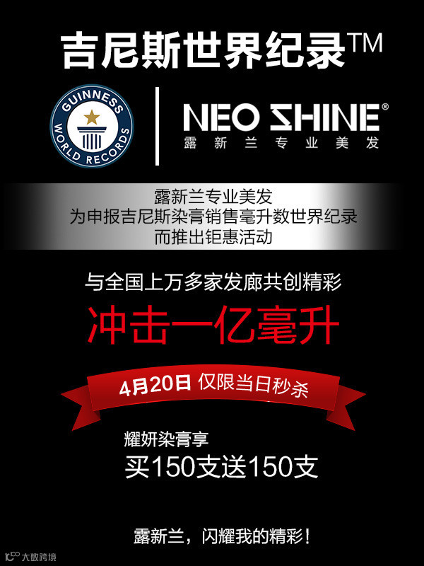 搜索微信公众号“neoshinemall”并进行关注,即可参与为挑战吉尼斯世界纪录™荣耀而推出的钜惠活动。