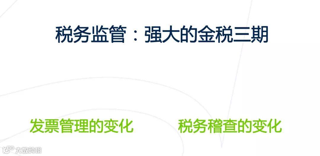 提到税务监管,就不得不说一下金税三期。我们今天主要说两个跟各位相关的重点内容:增值税发票管理的变化和税务稽查的变化。