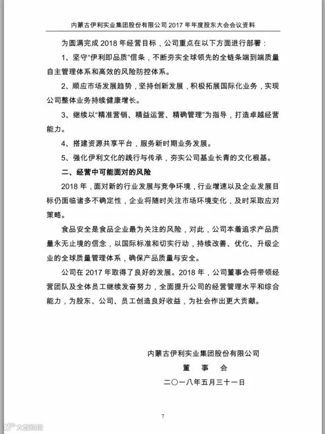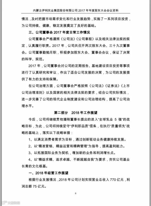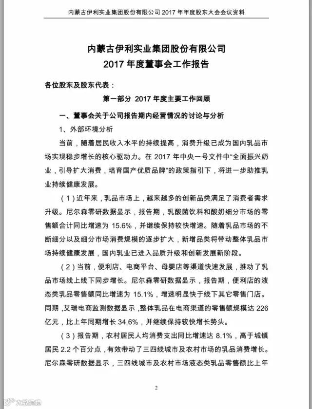 以下是昨日股东大会上伊利董事会的工作报告全文: