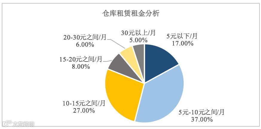 因不同地区、不同区位以及不同仓库设施配置的仓储,成本不尽相同,从《新经销》的问卷反馈数据来看:5元/m²-10元/m²每月是经销商主流的仓库租赁成本,约占37%,约有19%的经销商仓储单月成本超过15元/m²。