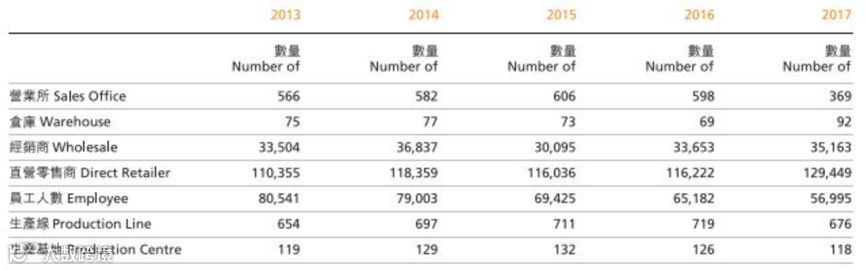 1)某知名食品饮料企业:员工数从2013年的80541人,一路精简,截止到2017年财报显示,员工数为56995人,4年时间减少23546人。平均每年减少接近6千人。营业所也从曾经566个,减少至369个。
