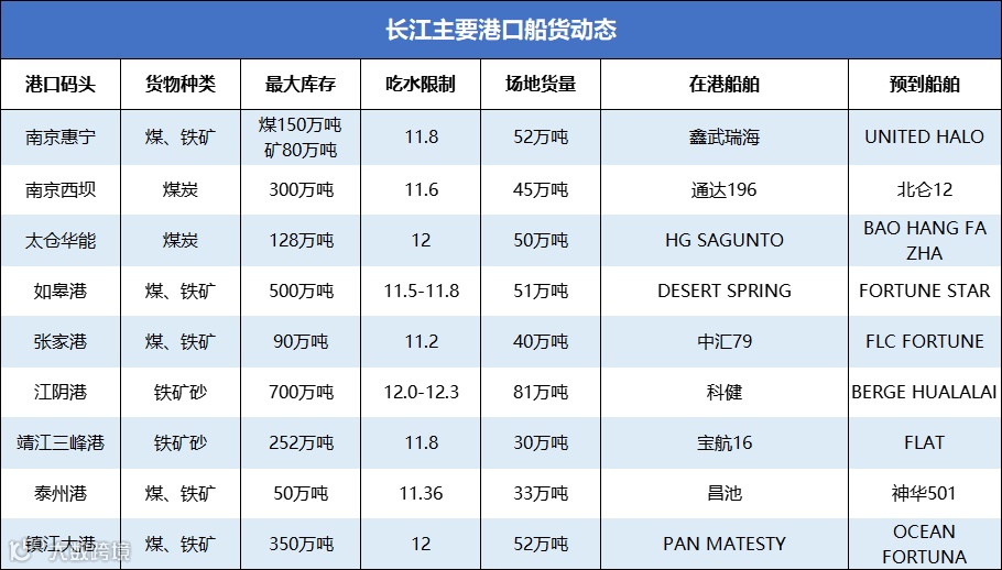 下水货盘需求较之前有所增加。沿江主力电厂冬储煤还在继续,需求开始增加;长江内河货源补充有所改善,非电领域建材、化工等行业受终端需求也有增加,运价也受到支撑上涨。后期需重点关注枯水期水位变化对船舶实际载重的持续影响。