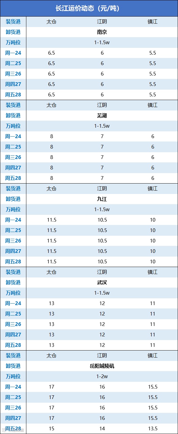 近期终端库存尚可,运输需求和平时差别不大。煤炭价格处于高位,需求受到抑制,运河货运较少。运价较之前有所下行。后期看运河等闸和限行情况。