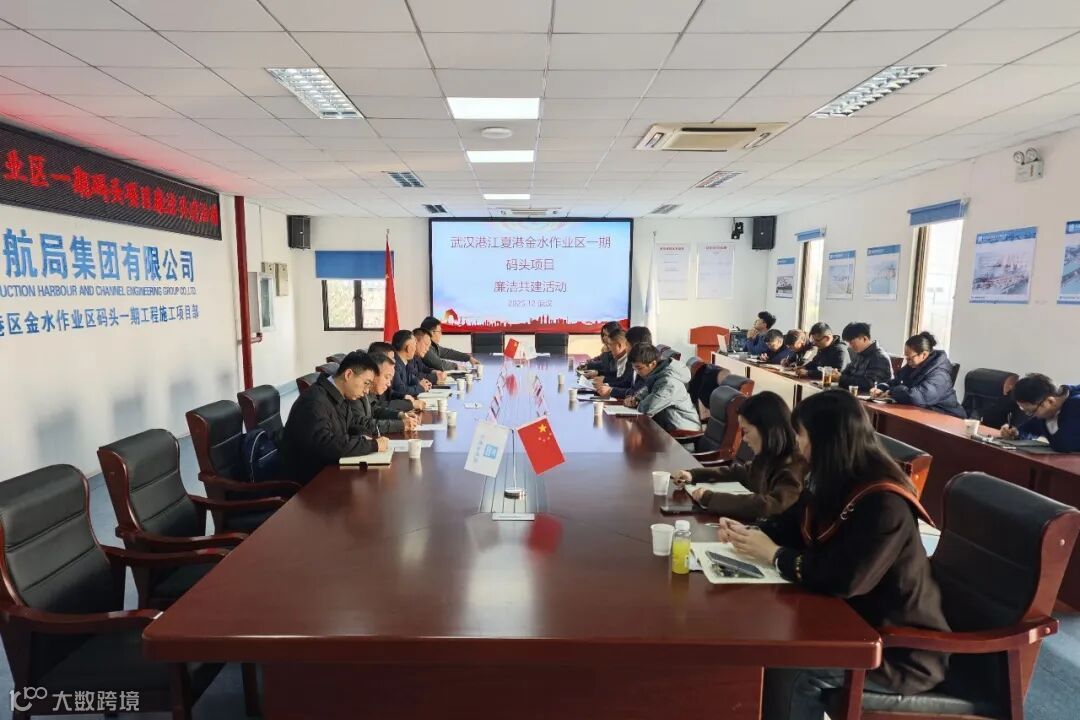 为深化工程建设领域廉洁风险防控,营造风清气正的项目建设环境,12月18日,金江南公司联合监理单位、施工单位,共同开展武汉港江夏港金水作业区一期码头项目廉洁共建活动。江夏国资集团纪委书记袁若新、华中港航集团纪委书记陈国军、江夏文旅集团纪委书记邓福军出席活动并致辞。中建港航局第五公司纪检委员解乐明主持活动。