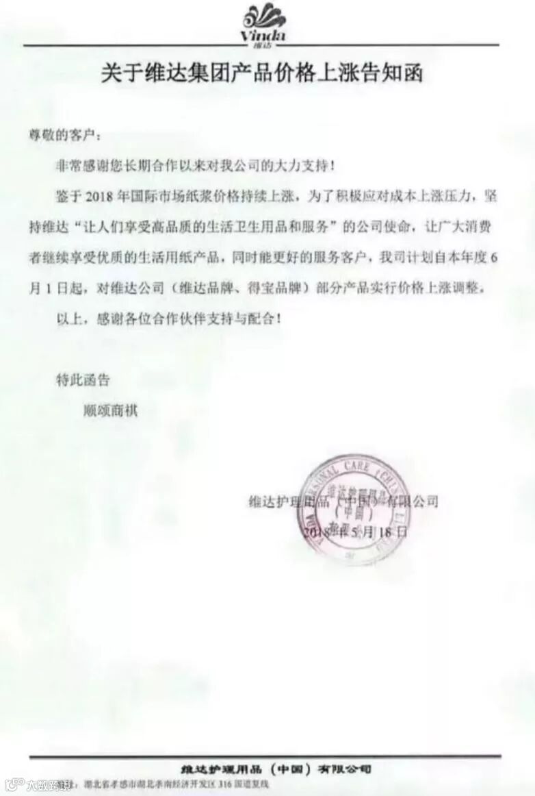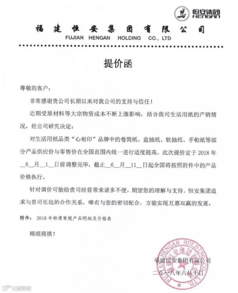 生活用纸行业的龙头公司维达国际的"维达",恒安国际的"心相印",金红叶纸业的"清风"近期纷纷发布涨价函。国际纸浆近1年疯涨47%,卫生纸涨价近期或难控制。