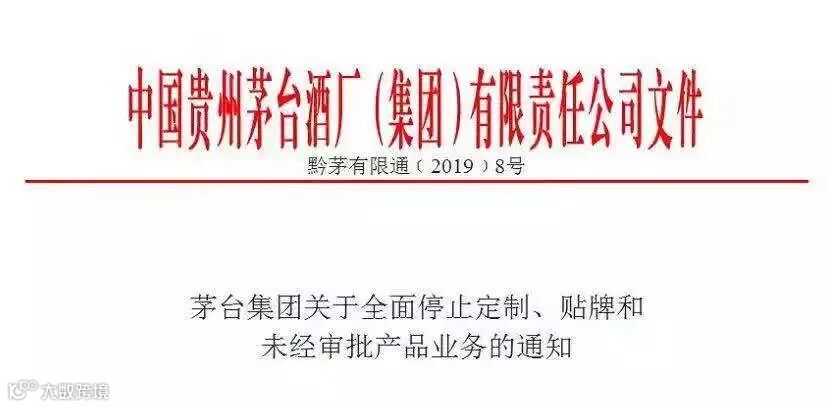 贵州茅台集团于2月18日下发《茅台集团关于全面停止定制、贴牌和未经审批产品业务的通知》,要求全面停止包括茅台酒在内的各子公司定制、贴牌和未经审批产品所涉业务,相关产品和包材在未经集团允许的情况下,就地封存,不再生产和销售。