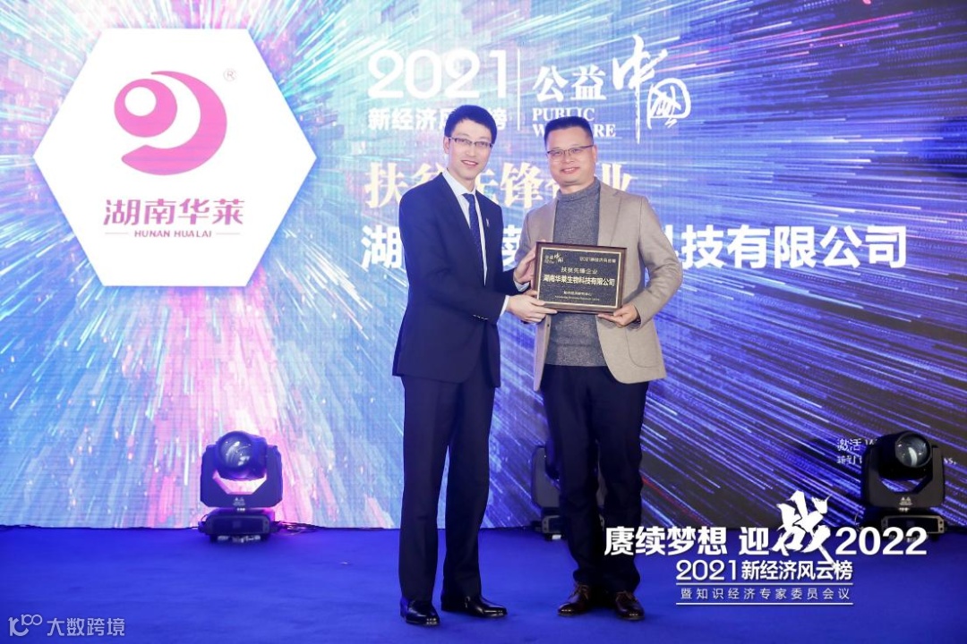 12月4日晚,“2021新经济风云榜”颁奖晚会盛大举行,近200名在新经济领域中作出重要贡献、风雨坚守、传播正能量的代表荣耀登台,接受了主办方颁发的荣誉奖牌。我司因在助农帮扶、乡村振兴工作中做出的重要贡献,而荣获“扶贫先锋企业”称号,总裁张先枚荣获“扶贫践行人物”,公司副总经理严子棚上台领奖。