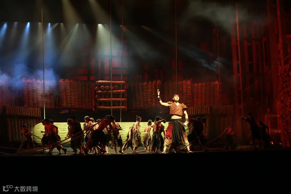 走出天下茶道,旁边就是一座气势宏伟的“天下黑茶大剧院”,剧院内主打节目是由中国山水实景演出创始人梅帅元艺术团队打造的中国黑茶文化大型舞台剧《天下茶道》。该剧以独特的舞美创意,将有限空间进行了破壁式延伸,用“奇缘”“离乡”“险途”“塞外”“异国”“天下”六幕的叙事,带领观众穿过时光隧道,重走万里茶道,感受黑茶文化的壮阔,感受安化人民的质朴,感受黑茶背后的生活,还有爱和美好。