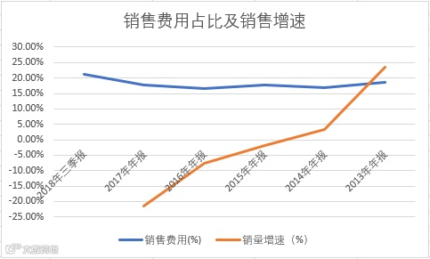 2013年至2017年,承德露露杏仁露产品销量增速持续下滑,但其销售费用占营收比重却几乎没有变化。也就是说,在面对产品销售颓势时,承德露露竟然没有尝试加大销售方面的投入来挽回业绩。