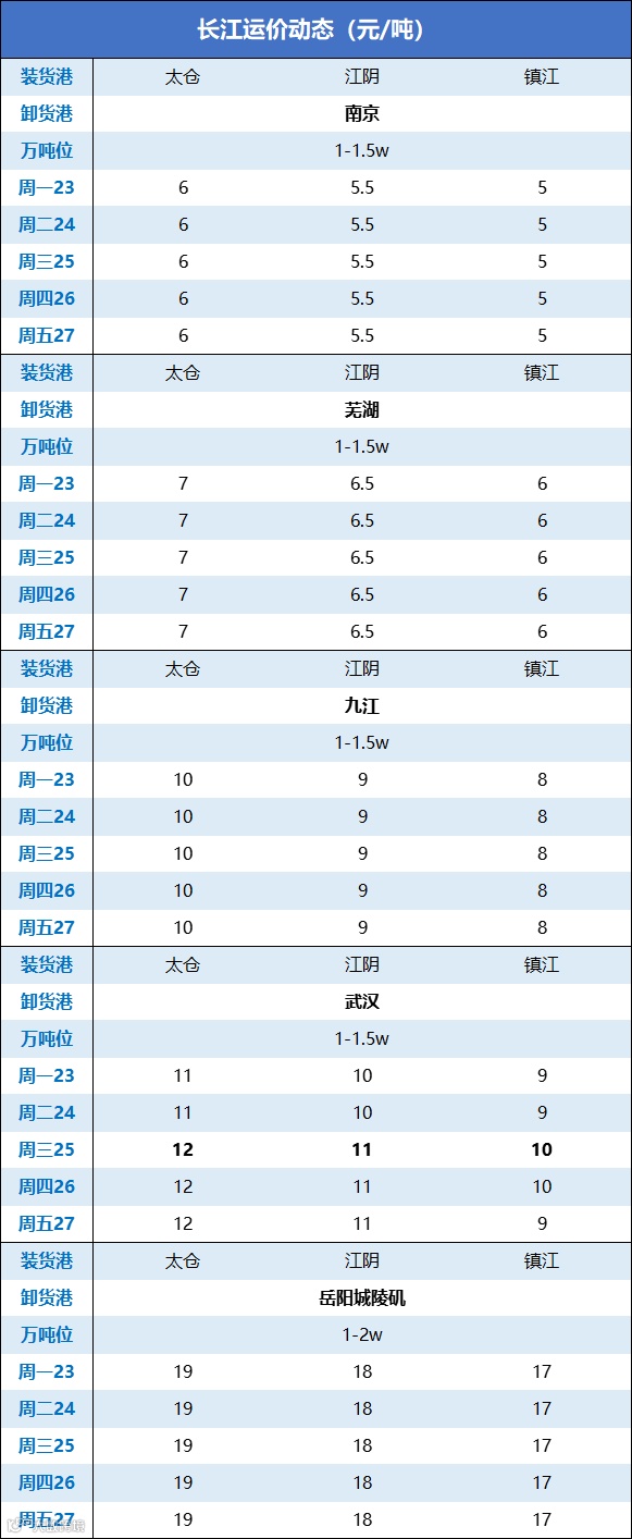 周五镇江到淮安单机1-2千吨的运价为10元/吨,2-3千吨的运价为8元/吨,拖队8-10千吨的运价为11元/吨;
