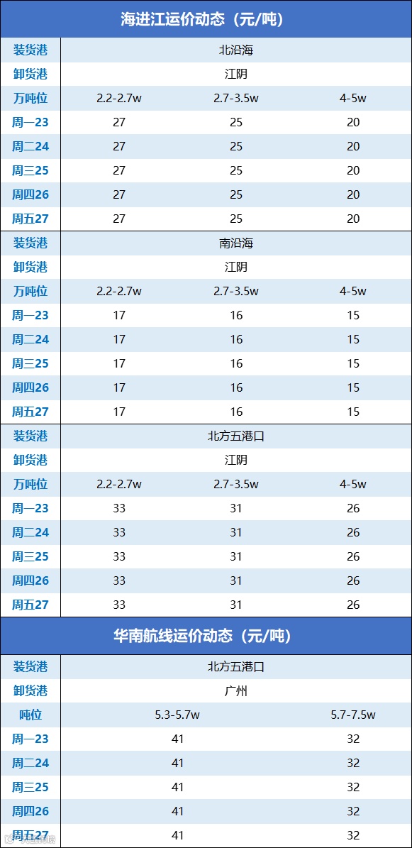 申明:以下运价由多方提供,仅供参考,具体运价自行商谈。