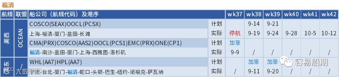 以下是容易船期统计中国大陆到北美、欧洲和地中海第37-42周(2022/9/4起-2022/10/15止)停航跳港汇总: