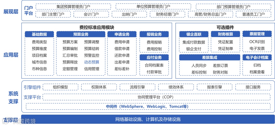 将预算控制融入费用报销流程组建预算费控一体化,与第三方商旅平台对接构建协同差旅一体化,与财务的ERP系统对接实现业财资税一体化,真正实现业财融合。