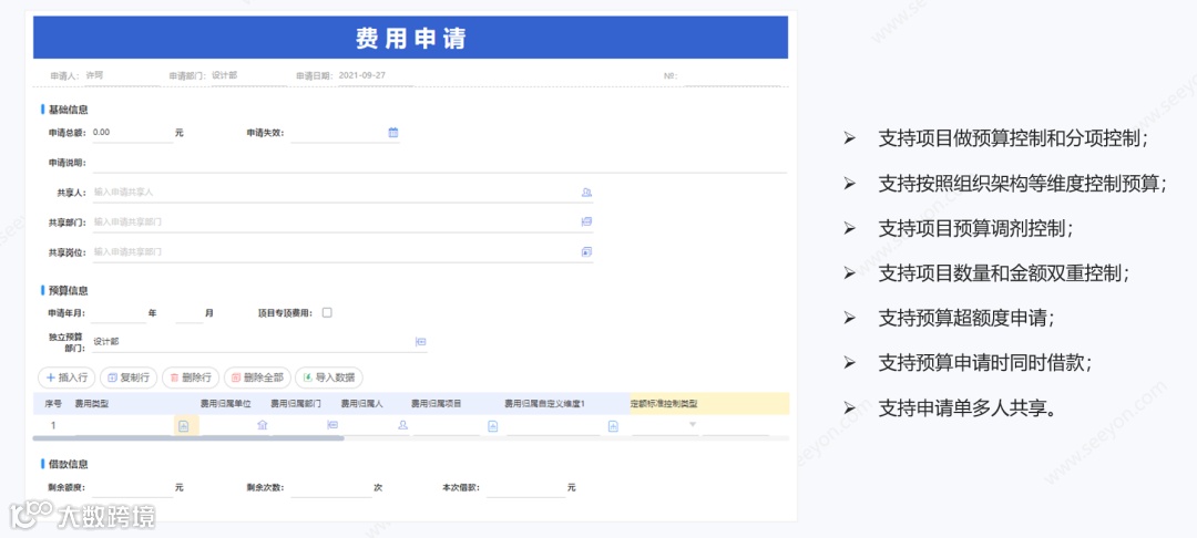 费控管理解决方案以协同为设计理念,以流程为驱动,与预算、报销、票据、支付、凭证集成融为一体,可组可分,量身打造一体化平台。