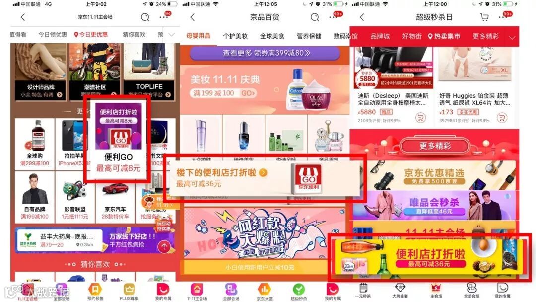 本次11.11,京东便利GO小程序还首次接入了京东APP,消费者可通过京东APP多个频道跳转至京东便利GO小程序享受线下大促福利。