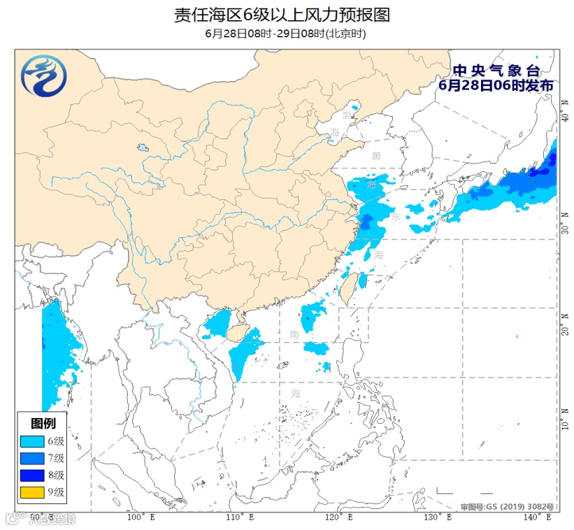 预计,29日白天至30日夜间,受入海气旋和西南季风的共同影响,黄海中部和南部海域、东海大部海域、台湾海峡、南海北部和中部海域、北部湾将有6~7级、阵风8级的风,其中黄海中部的部分海域、东海北部的部分海域将有8级、阵风9~10级的大风。