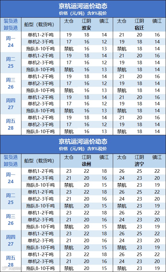 #1 京杭运河运价动态