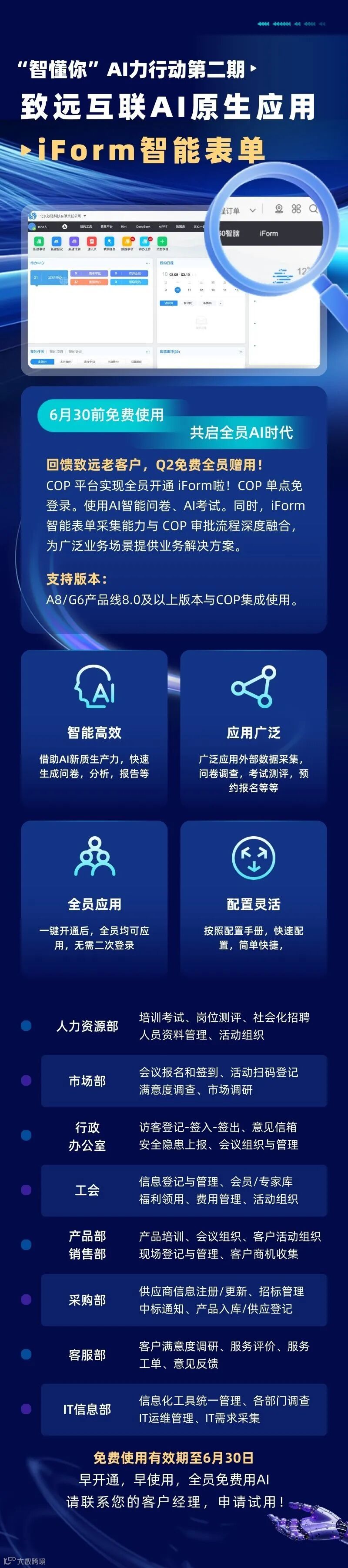 致远互联通过“以人为中心”的协同管理理念和云原生、微服务、低代码、大数据、人工智能等新一代信息技术,以协同和数据联通企业内外部业务、人员、运营等,利用随需定制的协同平台及云服务为企业组织再造、流程再造、业务创新提供坚实基础,帮助每一个组织提升绩效,让数字化触手可及、落到实处,实现企业高质量发展。