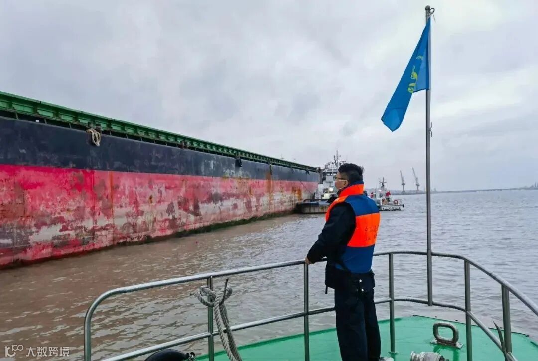 7时39分,崇明海事局巡逻艇在返航途中又发现一艘大型内河船上行,立即对其进行拦截。