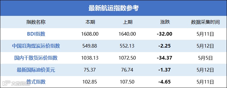 昨日市场整体延续偏弱持稳,沿海散货运价走平。
