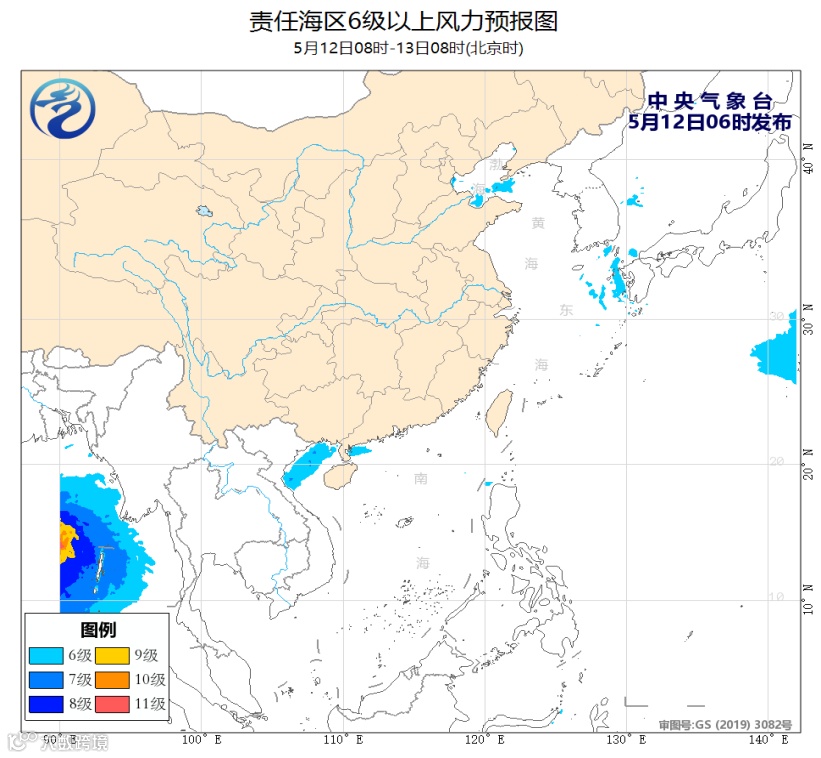 12日白天至14日夜间,渤海、渤海海峡、南海北部海域、北部湾将有5~6级、阵风7级风。