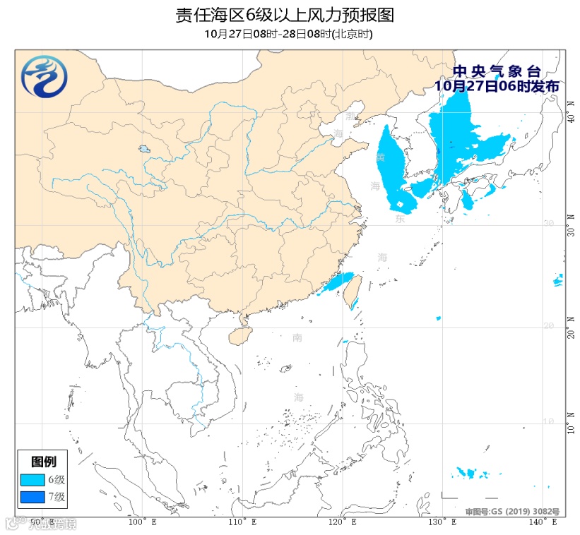 27日白天至29日夜间,黄海东部海域、东海东部海域、台湾海峡、巴士海峡、南海北部海域、北部湾将有5~7级、阵风8级的东北风或偏北风。