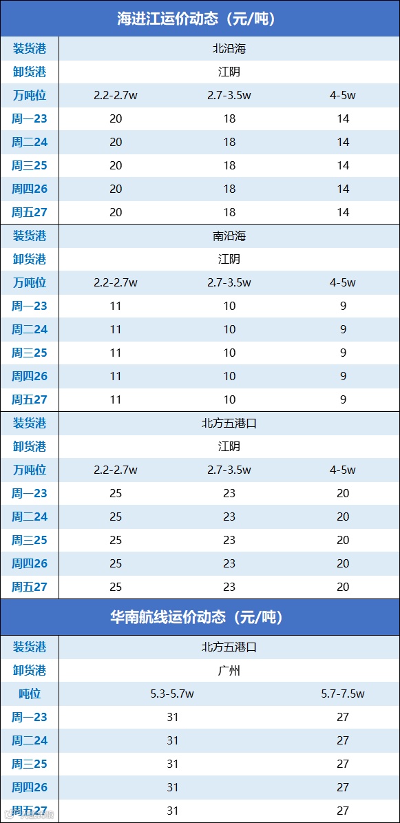 市场商谈依旧平平,煤价下滑拉运需求紧缩运价走平。在高库存下,又逢煤价下跌,大秦线恢复正常运转,拉运需求更是有所放缓。当前在冬储煤和年底非煤货盘加持下,沿海整体运输行情得以持稳运行,后期请关注煤价和拉运需求变化。