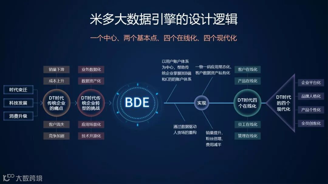 而要实现这一诉求,则要要求所有传统企业必须拥有一套能够在不同消费场景下,无障碍、无感知形成用户账户体系的大数据引擎系统,用于采集每个精准的目标用户的“原生数据、场景数据、行为数据、交易数据”,和凭账户体系所采集的数据来挖崛不同维度、不同需求动机、不同场景下的用户画像,以便于品牌商准确细分人群,以数据为依据,重新定义和包装产品,重新打造产品和服务,规划并扩展少而精的产品线。