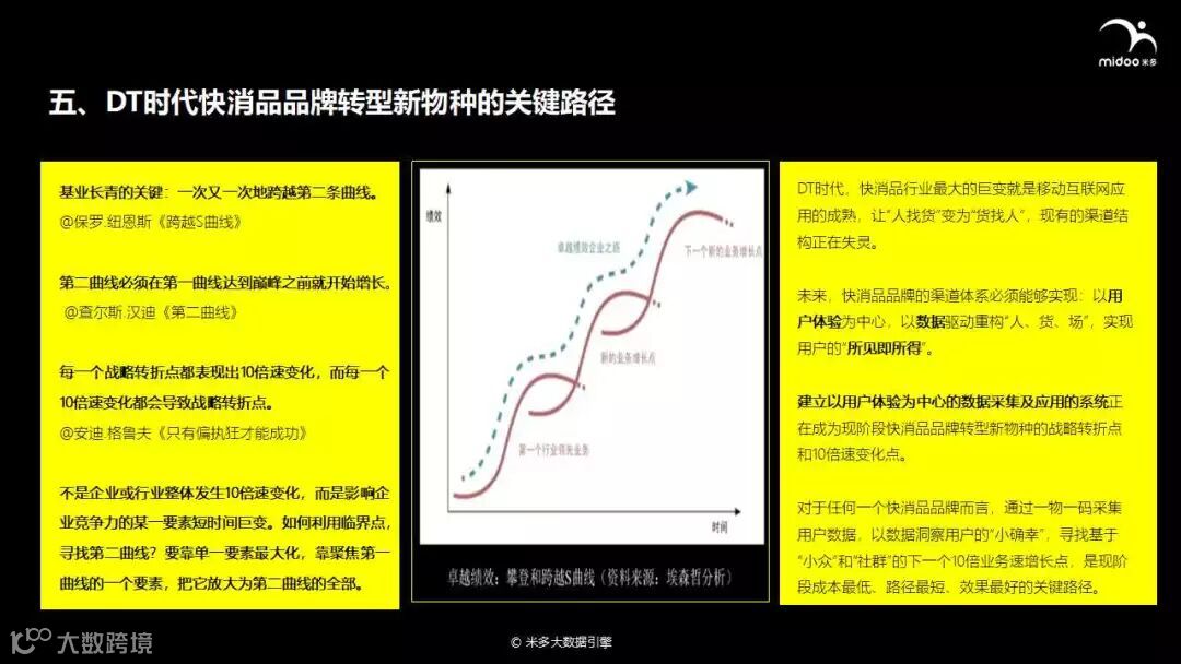 DT时代,快消品行业最大的挑战也是最亟须要解决的问题,就是 :让“人找货”变为“货找人”,以用户体验为中心,以数据驱动重构“人、货、场”,实现用户的“所见即所得”,建立以用户体验为中心的数据采集及应用的系统正在成为现阶段快消品品牌转型新物种的战略转折点和10倍速变化点。