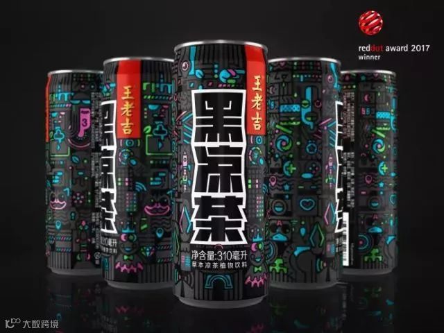 王老吉决心开辟年轻领域市场,打破原有传统红素包装,将主色调定义为黑色,在包装内容上同时采用彩色的爱心、皇冠、飞机、箭头灯88种插画狂热元素,代表88种年轻态度。用电玩风格去展现出二次元调性,符合当下年轻人猎奇爱玩心态,带给人酷炫之感。