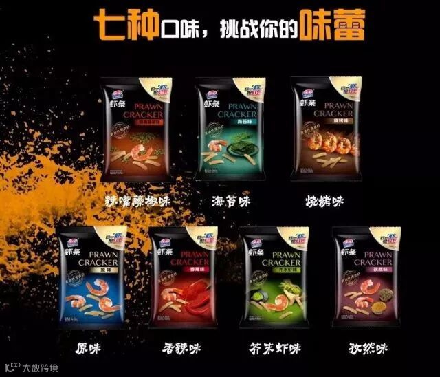 此外,除了亲亲虾条经典的原味之外,此次还推出了辣嘴藤椒味、海苔味、烧烤味、香辣味、芥末虾味、孜然味等多元口味,七种不同的味道可满足消费者不同的味蕾需求,更有不同的颜色进行口味区分。