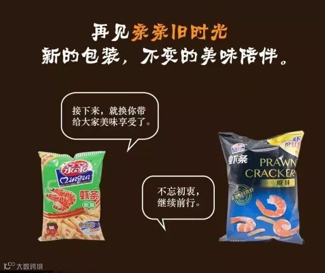 “亲亲虾条”整整影响了一代人的童年记忆,经典的红绿包装不仅热销近20年,更拥有着旺盛的消费活力。但是从2017年12月1日开始,亲亲虾条也换了“新衣”,将以全新的形象亮相市场。