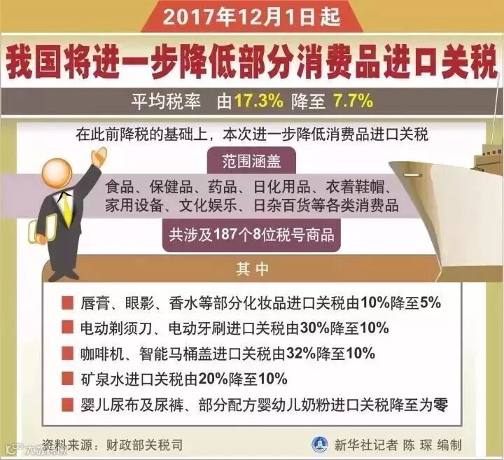 三、2017年12月1日起,我国将进一步降低部分消费品进口关税。