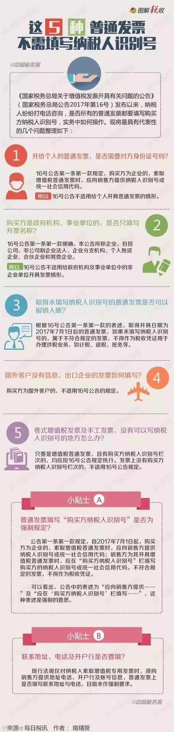 自2017年7月1日起,增值税发票必须开具纳税人识别号,让所有纳税人以唯一身份进入数据库。