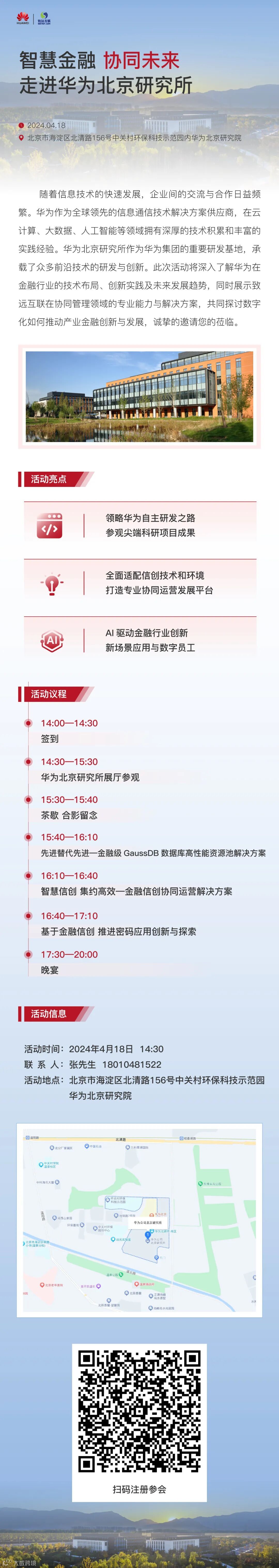 倒计时1天 | 4月18日 智慧金融 协同未来 走进华为北研所 致远北京
