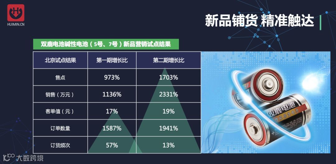 这个是我们在一个销售公司的简单的2周轮波打击结果,实际上没花多大的成本,是因为我们有一个“瞄准镜”、“核磁共振”,做了一次甄别,根据这些店历史的电池销售数据,做了精准推送,所以形成结果出来以后,至少超出我个人的预料,根据客户进货间隔的数据预判,很好地在第二波次取得了比第一波次还要好的效果。我以前做快消品的时候,凭感觉铺货,当我们有了大数据,当我们有了惠眼和惠景我以后,实现了千人千面,非常精确地打击客户,并且取得有效的留存。