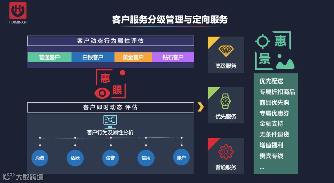 惠眼,就相当于我们去医院做手术之前的核磁共振,它能够找到数据里面的问题点和机会点,它把这些提供给下一个做实施做应用的系统,叫“惠景”,把整个惠眼分析的结果在这边实现运营、落地。