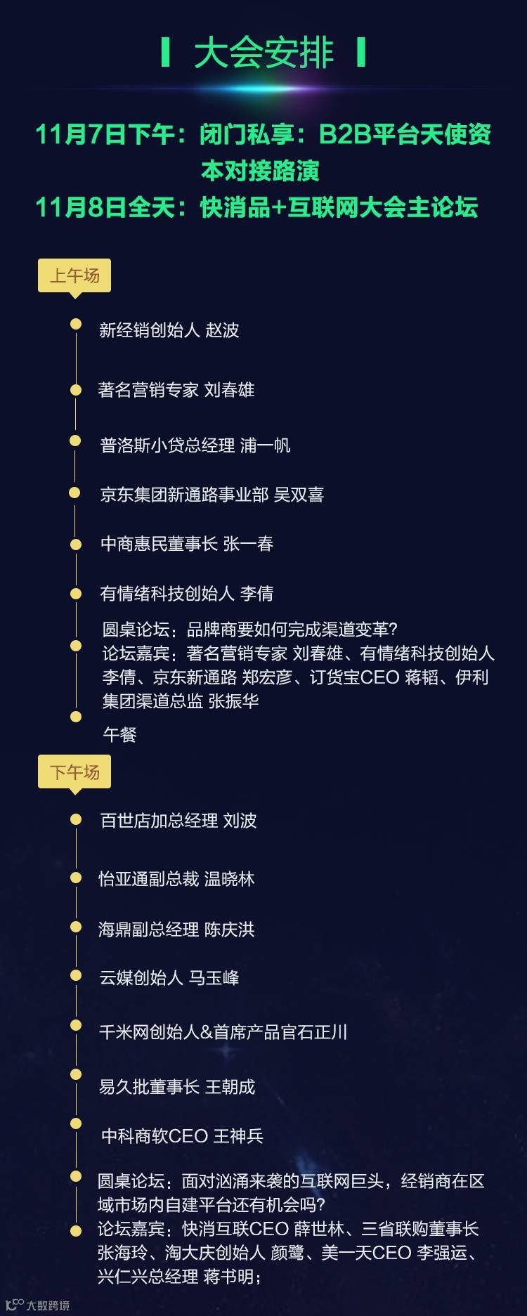 2017(第三届)快消品+互联网大会将于2017年11月份在重庆举办,大会将紧密围绕“新势力,新生态”主题,邀请国内1000+经销商,500+品牌商,200+家B2B平台的创始人,100+投融资机构,共同探寻跨界融合的新篇章!