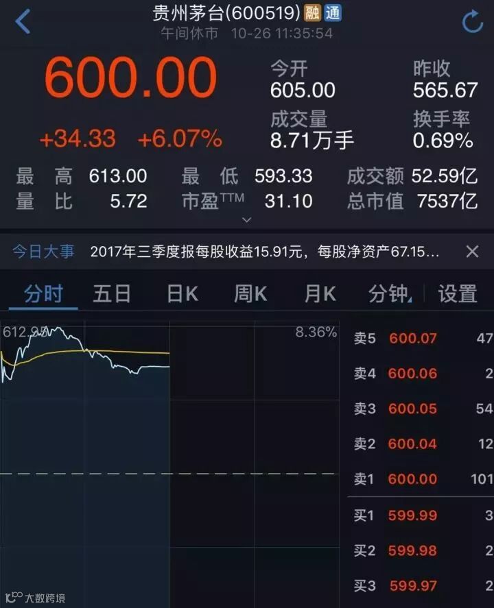 茅台股价突破600元,大家很激动,券商觉得还要突破800元,也就是对应的市值超过一万亿。群众们觉得要是手上有几万股茅台,那才是最牛的。