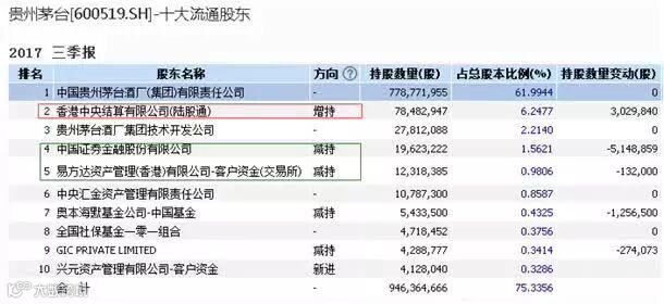 记者整理其三季报所披露的前十大股东持股动向发现,中国证券金融股份有限公司自2016年二季度以来持续减持贵州茅台,2016年3月底持股近2.96%,截至今年9月30日已降至1.56%,其中今年第三季度减持515万股。易方达资产管理(香港)席位、奥本海默基金、GIC PRIVATE LIMITED等也有小幅减持动作,分别在第三季度减持13.2万股、126万股和27.4万股。此外,泰康人寿保险退出前十大股东。
