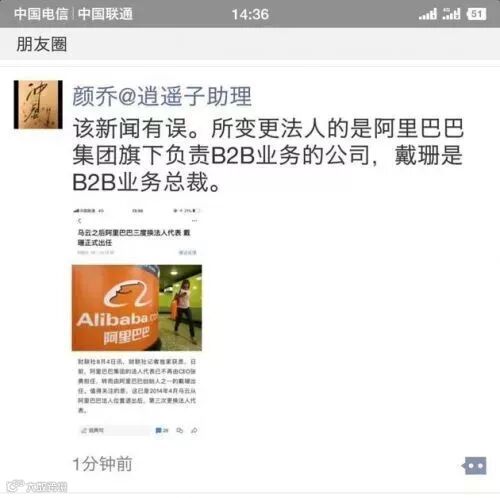 5、阿里B2B事业群总裁取代张勇成阿里法人代表?官方这样回复