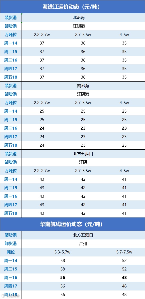 周五沿海运输市场情绪相对低迷,运价整体稳中偏弱,实际成交依旧有限;受高煤价、严政策及松进口等因素影响,下游电厂仍保持刚需采购节奏,市场货盘释放有限,运输需求不足,运价暂无明显支撑。