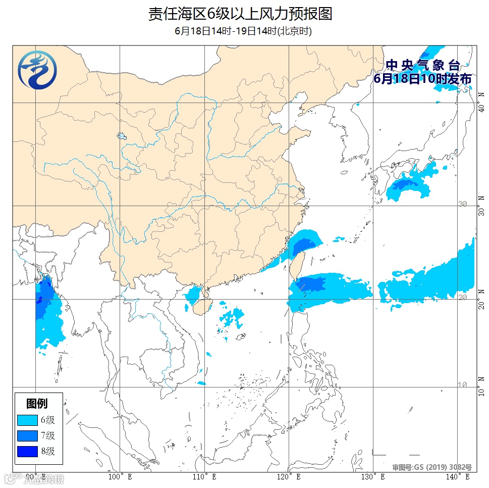 18日午后至20日夜间,东海南部海域、台湾海峡、台湾以东洋面、巴士海峡、南海大部海域、北部湾将有6~7级、阵风8级的西南到偏西风,其中东海南部部分海域、台湾以东洋面部分海域的风力可达8级、阵风9级。