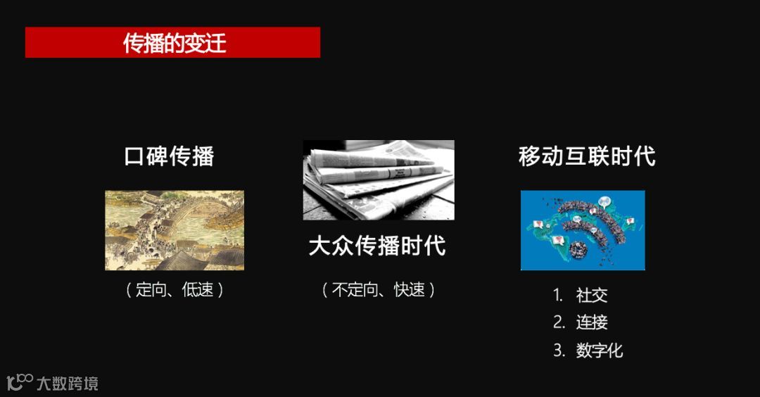 第三个是数字化时代。怎么样判断一个传播的效果,在过去是很难判定,只有收视率,只可以通过调研。