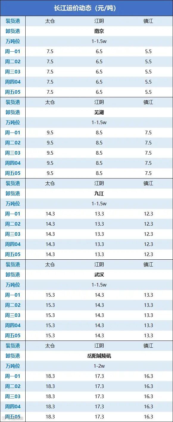 镇江到徐州单机1-2千吨的运价为17元/吨,单机2-3千吨的运价为15元/吨,拖队8-10千吨的运价为14元/吨;
